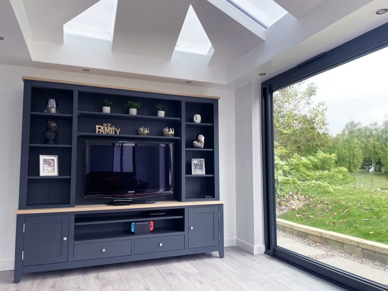 Rather than simply replacing the roof, the family decided to redesign the space to create a room they could enjoy all year round. Full-length windows were positioned to maximise natural daylight and a set of large sliding doors provided direct access into the garden, which was an essential feature for the family’s lifestyle.