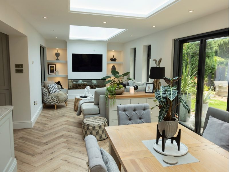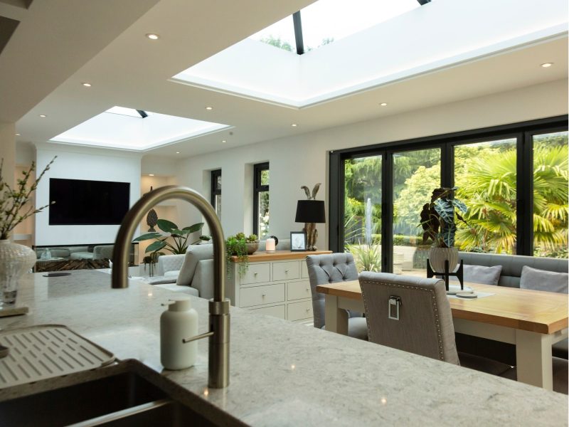 Their choice of a flat roof with large lanterns completely changed the design from a traditional conservatory to the ultimate modern extension.